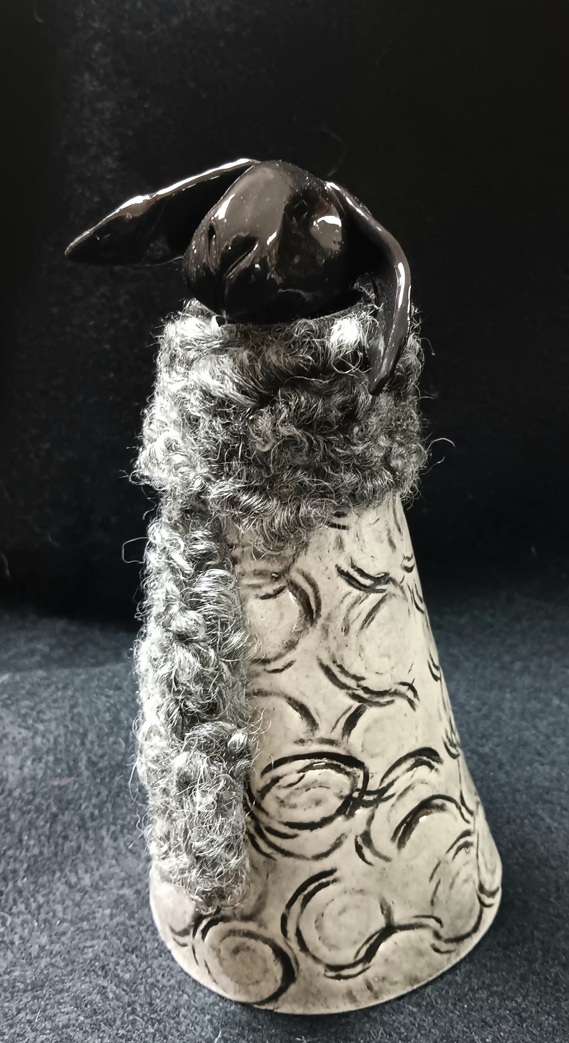 Handbuilt Stoneware, hand created & decorated sheep, named "Melchior"