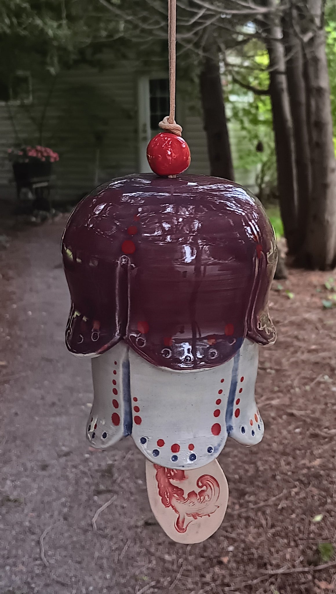 • Hand thrown Stoneware, hanging double bell (one inside the other) with handmade bead