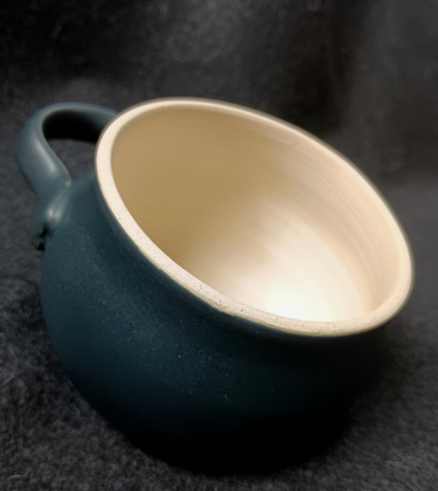 Hand thrown Stoneware, 'tipped' bowl with handle: the cook's on-counter easy reach for salt keeper