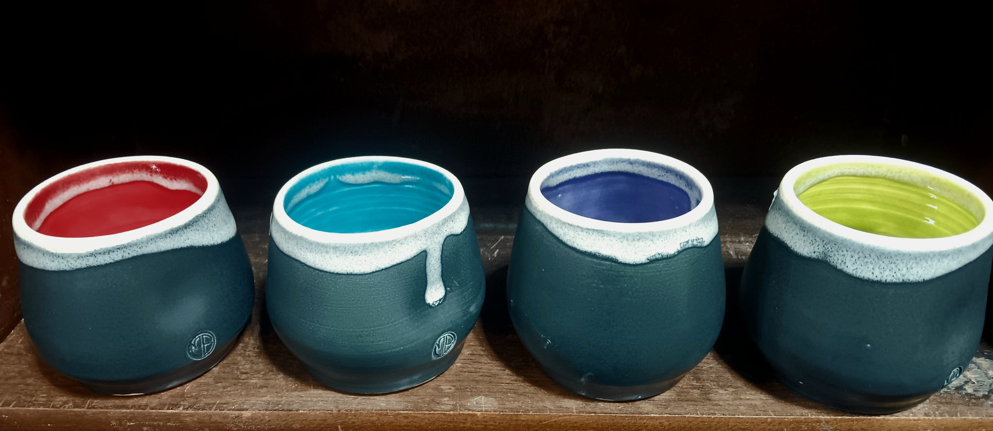 Hand thrown Stoneware, Set of 4 Tumblers (impressed for thumb)